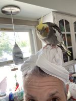 Loves food, very sweet. Can fly but is skittish and isn’t good at landing on target on first attempt.