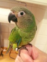 Grayson is a juvenile conure. Green with blue tipped wings and yellow patches on his shoulders. Last seen in the Pleasantdale Section of West Orange. He is friendly. Family is heartbroken.