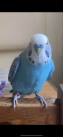 Fancy Blue and White English Parakeet, 7-8 years old.