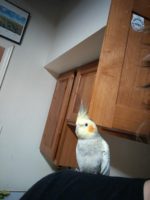 Rudy makes high pitched sounds and is probably very skittish/scared. He has little orange cheeks and about equal grey and yellow in the feathers. He’s small and flew away while it was raining. We’re very worried and just want to get him home.