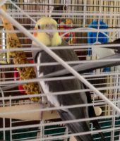 08/05/2016 Young cockatiel, “Peony” ~ medium gray with yellow head orange cheeks. Very shy, does not ‘step up’ easily, may try to nip. Flight wings not clipped. Flew out door, three miles south of Cooperstown, New York. Please call 607-547-1925 or 607- 435-9889 when found.