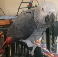Finn responds to whistling and knows how to “step-up” when asked. Very friendly and talkative- wings are partly clipped.