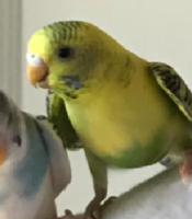 This is my bird Kiwi. She was adopted by me in my local Petsmart. And today she flew out of his cage with his friend. She can be distinguished by her very wide eyes, and her constant trying to act like a big budgie when shes outside of the cage. She isn’t the biggest budgie, but he is a big place in my heart. He’s about 6-7 months old, and she is a girl bird.