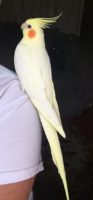 She is friendly but can be shy if scared. Loves her seeds. She has a orange cheeks, and a bald spot, with black smudges Underneath her wings