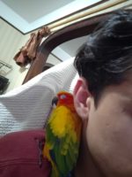 My Sun Conure is almost two years old. He flew and went on top of the tall tree. I waited for three hours for him to come down and unfortunately, he was very frightened and flew the other side. I tried to follow him but houses and trees were blocking my view. Then, I searched him from afternoon until evening and still no sign.
