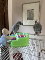Marlin is 21 yrs old. He has a ring on his right foot. He likes to make whistle and beeping sounds. He has bright red tail.
