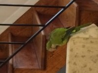 He has been with us for five years, he is friendly and will sit on shoulders. Also he likes to eat foods like bread, apples, grapes. He was lost in Gateway park (Great Kills) He went into the trees, we heard him screaming but could not locate him.