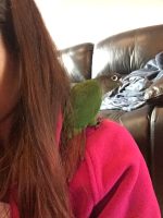She is a very anxious bird. She flew out on a rainy day as we were dropping her off to leave for vacation.