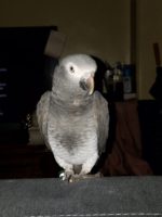 Medium size, banded, light brown beak, maroon color tail, talkative and will bite.