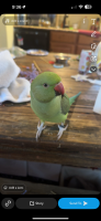 Green ringneck, 1 year old, black leg band “ALOHA – XXX”, the best boy ever.