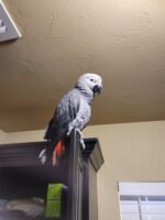 African Grey, lost in area of SW 29th and Mustang Road. Name is Pablo. Has 2 lost red tail feathers. Last seen flying over Pinnacle housing neighborhood.
