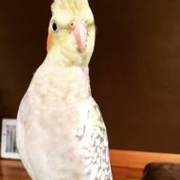 Has a leg band on but I don’t have the numbers for it has a white peach on the back of his head