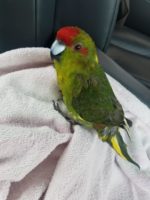 He is a young Kakariki, with disabilities he has had broken legs that were fused back together this was a problem from birth, x rays showed great improvement and with a wonderful veterinarian and physical therapy he has done so well. I love him so much and while we were camping we had an accidental moment where we underestimated his new strengths from all his physical therapy and in one quick moment je flew out our trailer door up high with other birds. And he was gone. We searched for hours. We are hoping for a miracle I love him and trust me if you could see him you would see he loves me too. Im broken. He was near the nestucca river by woods road in Pacific city Oregon. Please call me any time of the day if you see him I will drive right down. Im 2 hrs away though Im coming back to look again tomorrow. 360-991-8019.
