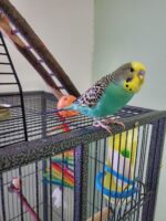 Zuko is around 5 months old. Depending on the light he looks more green than blue at times. He is not the best flier, his wings are not clipped however. He might have a small dark mark on his head as well on the left. He escaped at night somehow.
