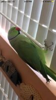 While I was on vacation my bird escaped while with his caretaker. I didn’t know he escaped until today, about 9 days later. Alistair is a green Indian Ringneck. He is 3years old and was starting to molt. He says “come here, come see me, Hi KeKe, Come here Coco” he also blows kisses. He is extremely friendly and not afraid of other animals such as dogs. He does not have a band.