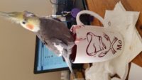 Very tame will land on your head, makes kissy noises, whistles the Mexican hat dance and wolf whistles. He is 21 years old and is a bit messy looking.