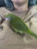 4 month old CWP he has clipped wings but they are still groaning back. Super friendly bird, all green with yellow and blue under his wings. Please email me at kingcourteney307@gmail.com