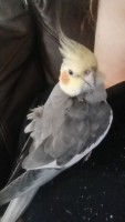 Male, Grey Cockatiel loves people and he is very friendly. Loves to sing and gives kisses. He has a yellow head. He is only 11 months old. Please help him find his way home. We miss him dearly. I can’t stop crying.