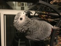 She usually responds by whistling, so whistling or calling her and (Juliet) will probably alert her. She is not banded.