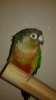 He lost a toe nail on the his right foot, he is very friendly and loves water, he just might fly to your shoulder, please contact me at 1800alyg@gmail.com
