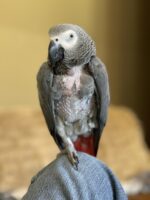 Answers to Remy or Rembrandt, has few feathers on his chest. Flew from Bunker Hill/Long Point towards Crestdale at 5:30pm. Has band.