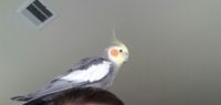 Louie is a normal grey cockatiel but he has a white marking on his head