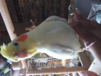 1 year old, very friendly, gives kisses, and is hand-fed. Loves affection and head scratches. Can “cat-call” whistle and my family speaks to him in English and Spanish.