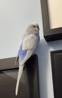 Light blue budgie about 3 years old very friendly especially if you have food speaks a little bit doesn’t like to be pet