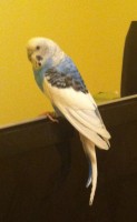 White and blue parakeet (budgie.) Female We are eager to get her back as we have her mate at home that is very sad without her.