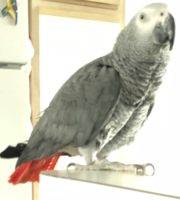 May bite if hes scared or mad. Hes all gray with a red tail.