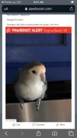 JACK JACK IS AN AZURE LOVE BIRD,HE IS PURPLE UNDERNEATH WITH A WHITE CHEST, AND A WHITE FACE, HE HAS A PEACH FOREHEAD,BEHIND HIS FOREHEAD HE IS GREEN AND DOWN HIS BACK IS GREY. HE TRIES TO SAY PRETTY BIRD. UNFORTUNATELY HE IS NOT BANDED OR CHIPPED. BUT HE IS LOVED AND MISSED DEARLY. WE ARE HEARTBROKEN OVER OUR SWEET JACK JACK. WE ARE OFFERING A $250.00 REWARD FOR JACKS SAFE RETURN MY PHONE NUMBER IS 757-478-8860 AND MY NAME IS PEGGY PARKS