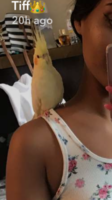 White cockatiel with orange cheeks, last time she had drops of red on her face cause she threw up. she is slim and stands up straight and is mostly domesticated. She knows how to get up on finger if approaching her calmly. She was last seen at the watergate hotel in Washington DC PLEASE HELP!
