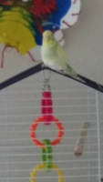 She is shy but very calm. She has a tag on her foot since when we got her at Petsmart.