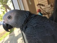 Misfit is very sweet for an AG. He whistles a lot and sometimes says “Meow”. He is about 8 months old. Misfit escaped around 4:00pm. He is fully flighted.