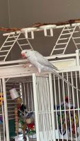 This is Ringo, he got out of his cage and outside Friday evening 6/21 he does respond to his name and a few phrases Ringo will say. Examples I love you, peek a boo, what the freak, gimme a kiss, free Ringo. Ringo is motivated by food he is semi tamed he will step up when told but does not like to be touched Ringo is a very scared bird and only trusts his owners