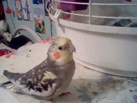 Sydney is17 years old, we have had him since he was 6 weeks old. We miss him a lot, He is friendly, does sometimes fly onto a stranger’s shoulder, but not often. He is a normal grey. He is banded but I never looked at it to see what it says. He says “gimmee kissy”, “hey syd”, “pretty bird”, sings part of Andy Griffith show theme, part of Laurel & Hardy theme, and sings something else our other cockatiel who flew out at same time sang when we got him, I have no idea what it is. He likes to eat corn, peas, and green beans,eating the inside of them. Loves millet spray, also pellets, but they are not his steady diet. His steady diet is cockatiel seed, he also loves noodles, rice, potatoes. Especially with cheese or tomatoe sauce. He loves the “birdy in the mirror” in the bathroom. For the first 4 years of his life he was our only bird, so the mirror became his best friend (besides us, we are very bonded). He also has a mirror in his cage and play area, and loves bells to play with. He likes to have his neck gently scratched with your finger.He is the sweetest, most lovable little guy. He gives us kisses and seems to understand everything he’s told. Please, if someone sees him or knows someone who found a cockatiel, please call us. He’s healthy but at his age, I don’t know if he can take being outside this long. The last 3 days have been warm but pretty windy. We are expecting rain tomorrow night. I just hope someone is taking care of him. Also too, he sometimes has watery droppings, also normal ones. This has been going on since before he was a year old, apparantly normal for him. Thanks for any info on him. I am posting a similar ad for our other cockatiel who flew away at same time. thanks, Pat