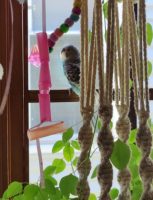 Henry is a blue bellied parakeet with grey black wings and grey black stripes up his head. He is a steadfast friend and a sweet little head bopper. He is greatly missed.