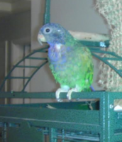Daisy is a shy, blue headed Pionus. She will approach strangers for food but scares very easily.