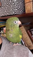 Owner will supply complete band information. Beebee likes walnuts, cashews, sunflower seeds, apple slices, and Mango. Beebee has four budgie parakeets at home that keep him company, they’re his friends. Beebee loves perching on people and sits either on a person’s head or shoulder. He likes to nibble your ear when you’re eating food so he can try some with you. If he likes you he will rub his beak on you. He will nip at lips to let you know he’s hungry and wants food. Beebee will perch if you hold your hand up and call him to ‘come here’ sweetly and whistle and call his name. He had a green body and yellow wing tips with white wings inside that can be seen when he opens his wings. His feet are pink and had 4 toes on each foot. He has a band. He escaped on Sept 14, 2023.