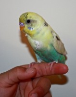 One Friday morning before school, my daughter was cleaning out the bird cage and I was coming in from the outside.  The door to the birdcage was open, but both of our budgies were inside the cage.  As I opened the door, Disco (a 1 1/2 year old green and yellow budgie) made a break for it and flew out the door, which was located about 15′ away.  She’d never indicated previously she might make a break for it, and by the brief amount of time the back door was open it looked like she had been waiting for an opportunity to make a break for it.  (My daughter had placed her on the windowsill in her room for several hours the day before, and apparently she’d gotten quite a long view of the great big world…)