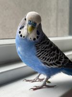 Our 4 year old blue budgie (Bluba) accidentally got out the front door this afternoon Oct 14.