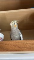 1 year old cockatiel, has a large amount of yellow on the back of her crest. She is very skittish so if she is sighted please do not try to catch unless she flies down to you.