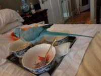 Vinnie is a blue Indian ringneck parrot. He has a high pitched voice and screech that is quite unique from common birds. He has a long tail and when seen in the distance, resembles a large long hummingbird. Can say his name, “I love you”, “you’re so cute” and more in the ringneck voice. Loves chips.