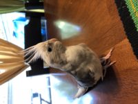 Lucky is a grey and white cockatiel. He responds when being called lucky-boo. He also responds to any kind of whistles.