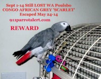 Sept 1-14 Still Missing ***REWARD*** AFRICAN GREY PARROT