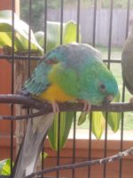 Jaden is fully delighted, loves chatting at people and sings sounding like a canary. Might be drawn to other parrot chatter as he is used to being around other birds. Loves broccoli. Has been sighed at nearby feeders.