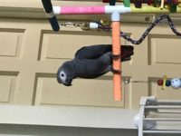 He is 7 months old. He will meow like a cat and blow kisses. He likes to chatter a lot but does not say many clear words yet.