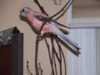 Tickle is just over 16 weeks old and was not hand tamed. I feel “he” knows his name but most likely would not come to anyone. I am not sure of the sex as he won’t get adult plumage till possibly fall. I have heard “him” sing so I lean towards male.