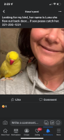 Luna has pink eyes, may not be approachable until she tires out. Has a few feathers missing on her back neck. please call if found and captured, she has been missing since Sunday morning, she flew over the McDonalds by Olmstead drive. 321-292-1231 Thank you in advance.